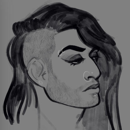 Slinky and sophisticated socialite/consort who makes a living indulging the vices of the obscenely wealthy and has a strong appeal as a professional (fin)dom. Charismatic and smart, Amir is always one step ahead and is a dangerous player of The Game. His monster form is a succubus and he has a particular love of playing with power dynamics.
